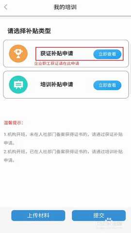 进入培训补贴办理点击获证补贴申请进入即可申请办理
