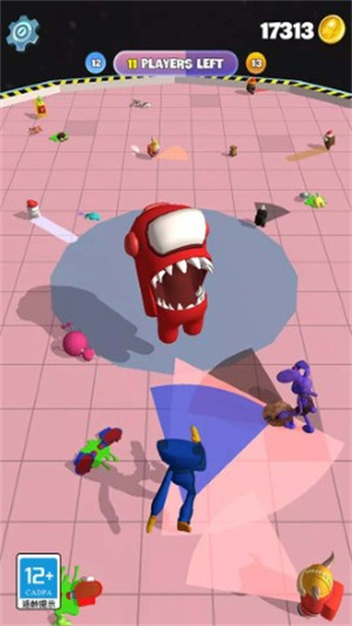 狼人太空杀游戏会将所有角色集中在一个超级大的棋盘上,玩家在开始游戏的时候会选择自己要成为狼人还是普通人。如果是狼人的话,你的体型会变得非常大,而且手里也会有武器,你的目标就是将场上所有的玩家全部消灭掉。如果选择成为普通人的话,你将拥有很多的队友,大家一起合作,躲避狼人的攻击,在规定的时间内存活下来!