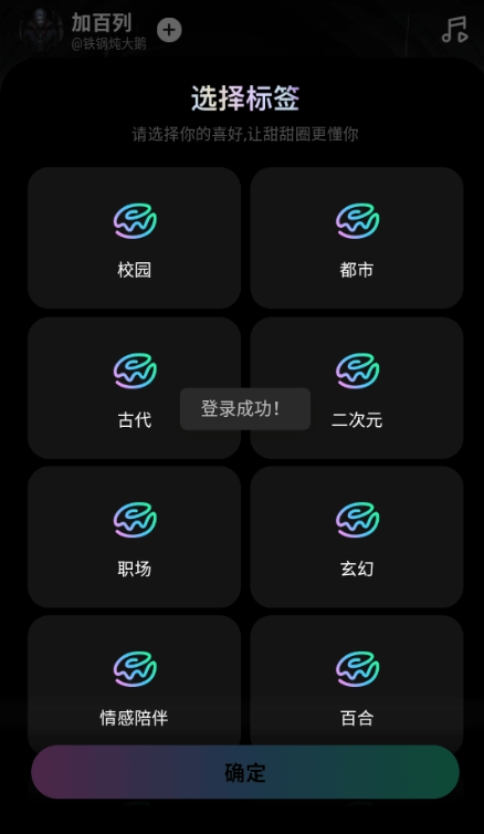 3、然后选择喜好标签,方便系统为您推荐角色。