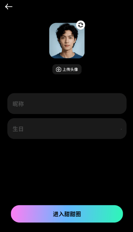 2、先选择性别,然后填写昵称和生日信息。
