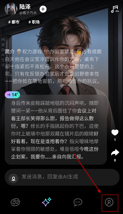 5、选择喜欢的AI角色,点击进入后发送消息即可开启聊天。