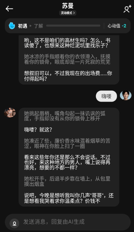 操作特别简单,打开软件选个角色就能聊,打字或发语音都行,AI回复速度很快,基本不用等。界面干净,没什么复杂按钮,新手也能一秒上手。