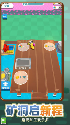 矿工生存3D游戏拥有超级简洁的挖矿游戏画面,在这里化身成为一名黄金矿工,解锁不同的挖矿设备,一起来线上模拟体验你的生存之旅吧,快速寻找勘测宝藏所在的位置,带上你的好友一起来参与挖矿模拟,努力获得更多的金币奖励吧。