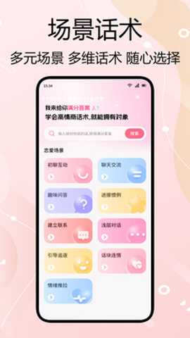 1、知音密语中,用户可以找到各种情境下的交流话术,涵盖爱情、职场、社交和家庭等多个场景。