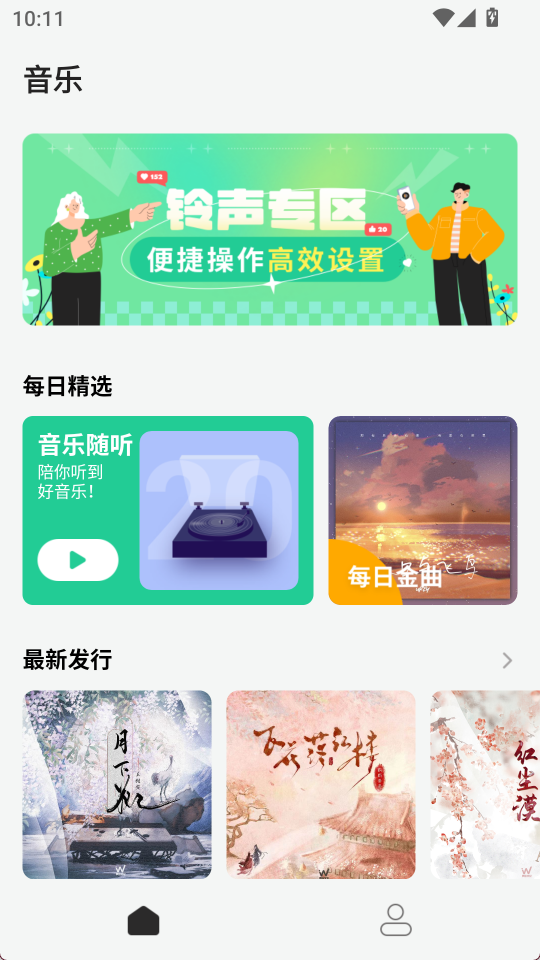 声玩音乐是一款综合影音娱乐应用,提供丰富的音乐资源与个性化听歌体验,汇聚了海量正版歌曲,涵盖流行、国风、古典等风格,满足各类听众的需求,提供铃声定制功能,让音乐融入生活的每一个角落,带来轻松愉悦的听觉享受。