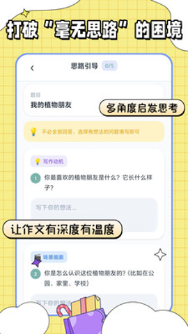 输入作文题目、题材、字数等要求后,系统将自动进行启发式问答引导,帮助梳理写作思路。