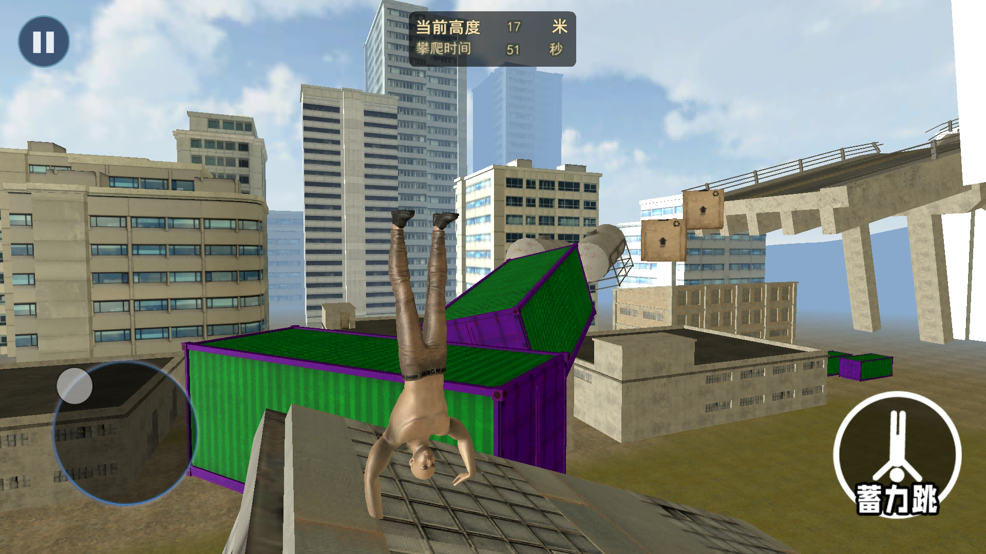 3、借助各种建筑,你可以按住蓄力跳,让你不断的突破自己的高度。