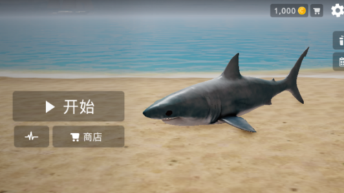 1、进入游戏后,你可以看到一条大鲨鱼正在沙滩上,点击开始。