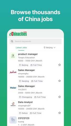 eChinacities是一款求职招聘软件,应用中有着海量工作岗位可以在线投递简历,无论您是刚毕业的英语专业学生,还是在职的外籍人士,或是计划来华工作的海外人才,都能在这个平台上找到适合自己的工作机会,有着教育、销售、互联网、表演及模特等多个领域,满足了英语专业人才的多样化就业需求。