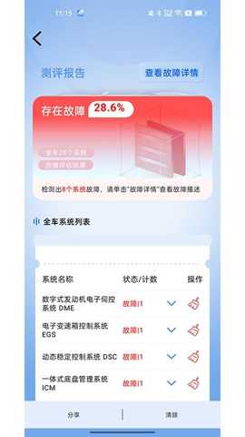 1、还提供了详细的故障测评报告,用户可以直观地查看车辆故障的具体情况,快速解决,降低行车风险。