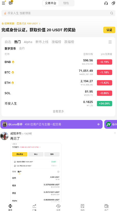 币按web3钱包app官方版是全球市占率超50%的头部加密货币交易所,提供比特币(BTC)、以太币(ETH)、币安币(BNB)、莱特币(LTC)等超100种主流及小众加密货币的交易服务。作为行业标杆平台,币安以低手续费、多玩法、高流动性为核心优势,支持全球用户安全、便捷地参与数字资产投资,是新手入门与资深交易者的首选工具。
