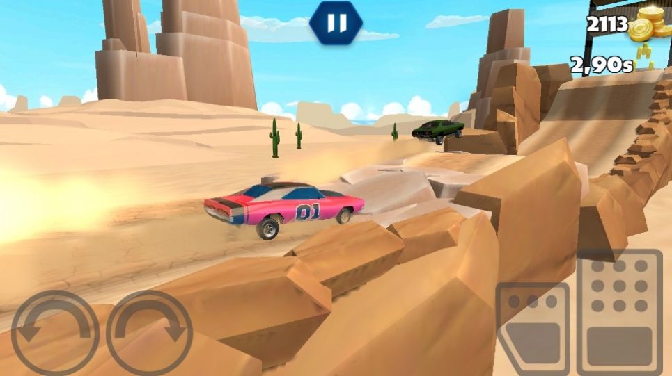 2、横冲直撞汽车特技游戏开始冲刺,用指尖较量谁更快。快速驾车到达目的地。