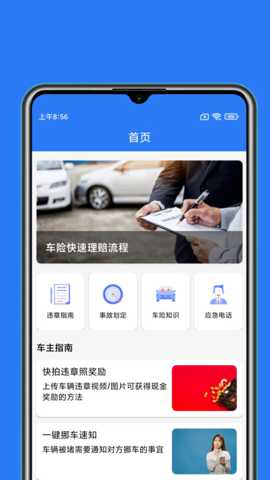2、首页有交通相关的各种功能,有违章指南、事故划定、车险知识等等。