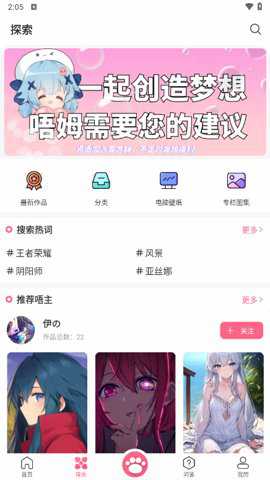 1、唔姆壁纸吸引了全球的UP主入驻,你可以关注你喜爱的UP主,及时查看TA们的最新画作。