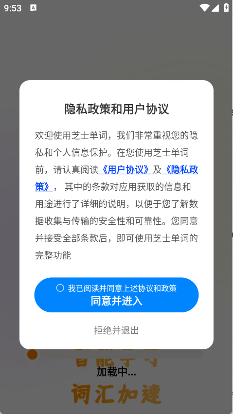 1、首先在当游网下载芝士单词app,查看并同意隐私政策与相关协议。
