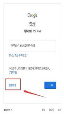进入谷歌登录界面后,点击“创建账号”。