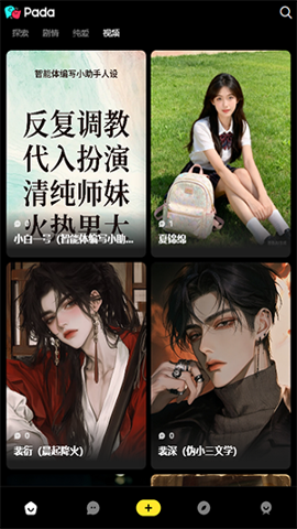 2、Pada的首页设计十分人性化,提供了多种类型的AI角色供用户进行聊天互动。