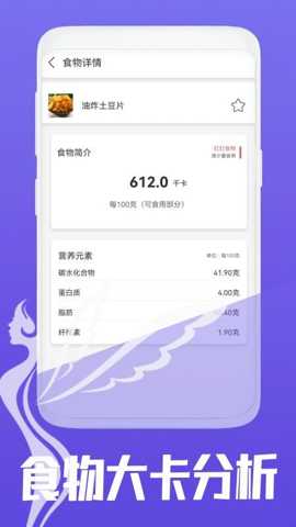 3、食物的营养成分用户可以更清楚地知道哪些食物是有助于减脂的,哪些则应当适量控制。