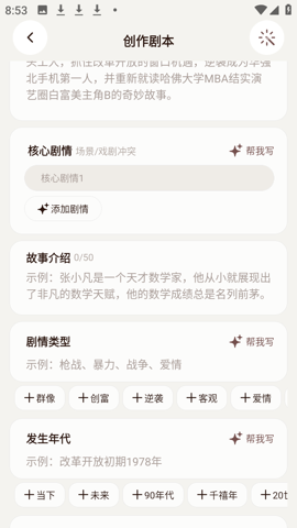 1、创建剧本的过程中,你可以为你的剧本添加角色、设定剧本名称以及撰写梗概。