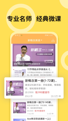 2、新概念英语遇到外语学习难题随时可以拍名师软件,内容相当的全面,学习进程让你一目了然。
