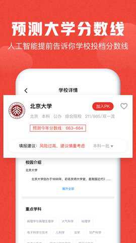 极志愿是由八斗智能科技(广州)有限公司为考生们开发的志愿填报平台,在软件中收录了海量专业的高考相关的资讯信息,考生们能随时查看,系统中还自带校园库,可以帮助考生查看各个高校的录取分数线和招收人数,每天都会实时更新,帮助考生更加效率方便的填报志愿。