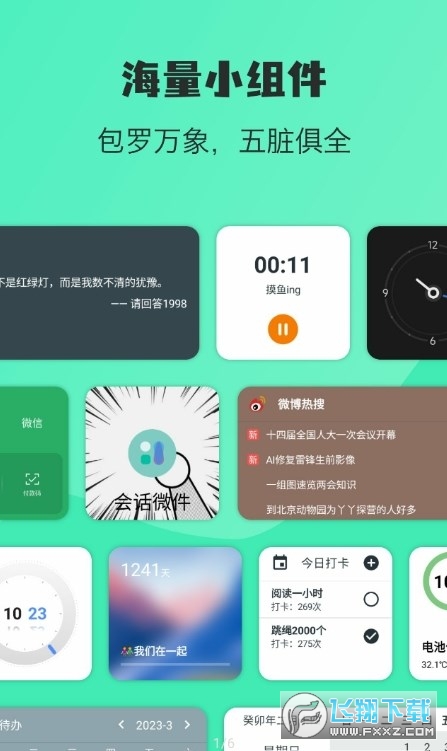 1、可以按需添加多种小工具,全面支持自定义设置,极具灵活性。