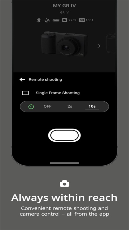 2、远程拍摄:可远程控制相机释放快门,还能设置自拍定时器,轻松完成自拍或远距离拍摄。