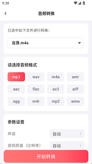 3、选择音频格式,点击“开始转换”