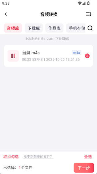 2、选择需要转换的音频,点击“下一步”