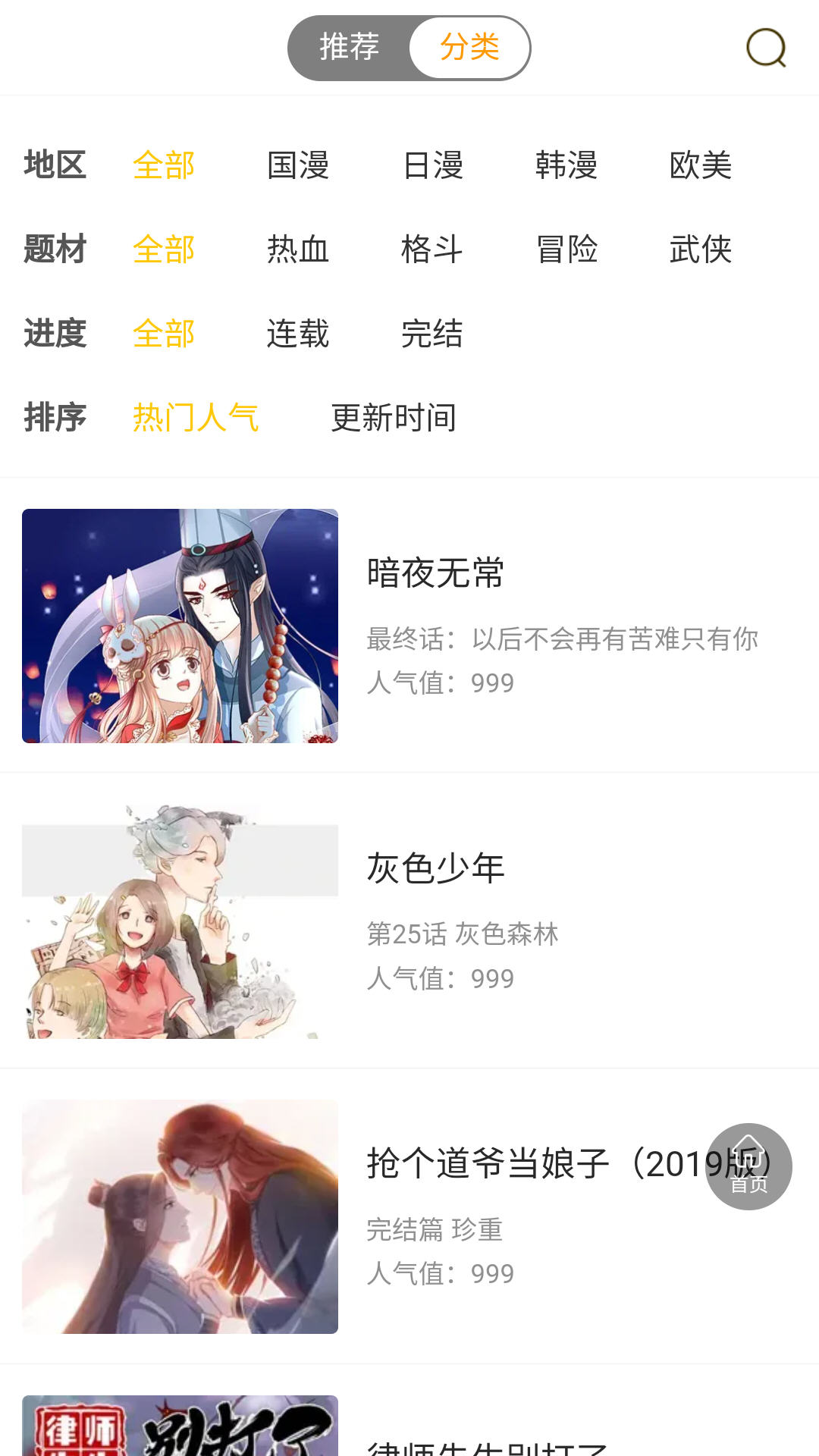 界面极简流畅:分类导航清晰,操作逻辑简单,新用户3秒上手,找漫、阅读流程一气呵成。