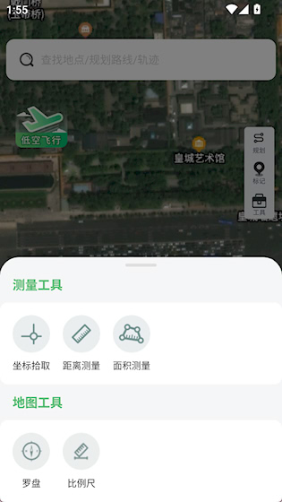 2、点击工具,可以使用测量、罗盘等工具