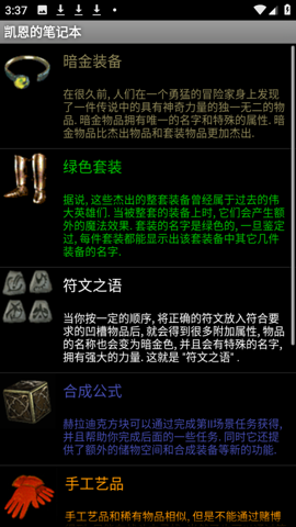 凯恩的笔记本是为暗黑破坏神2玩家们打造的游戏辅助工具,软件内含丰富的装备信息,涵盖了游戏中的各种装备类型,包括暗金装备、绿色套装、黄色稀有装备、蓝色魔法物品等,每件装备都附有详细的属性说明、获取方式以及适用职业推荐,玩家可以轻松了解每种装备的外观和数值,通过图文并茂的方式进行直观展示。