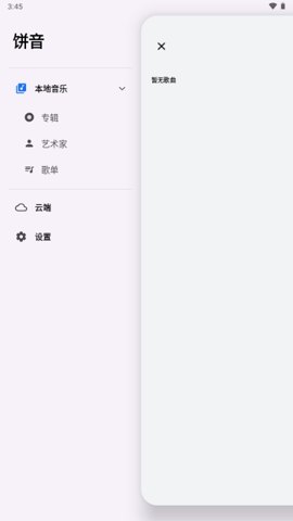 1、进入饼音后,用户可以通过点击左上角的三横图标打开侧边栏,选择“本地音乐”选项。
