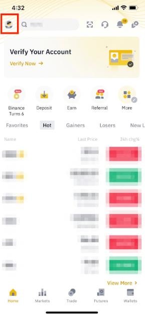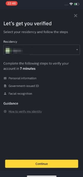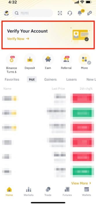 使用您的账户信息登录币安。成功登录后,您有两种方式可以启动身份验证: