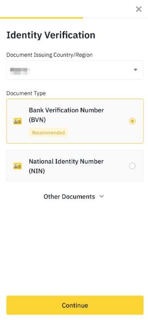 在认证界面选择您当前所在的国家或地区。系统会根据选择显示相应的认证要求,请确认信息与证件一致,然后点击【继续】。