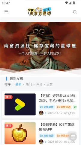 2、用户只需打开南窗资源社的APP,进入功能栏,选择安卓资源,便可以浏览到大量的应用供选择。