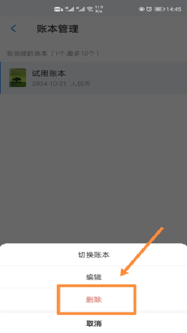 3第三步:选择对应的账本,点击下方的搁爬【删除】即可。
