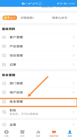 第二步:在显示的页面上,点击选择【账本管斤伐理】选项。