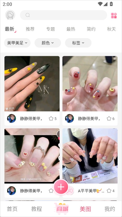 四、美图:作为美甲人最喜爱的功能之一,美图区每天更新大量高质量美甲作品,供用户参考、收藏、借鉴。