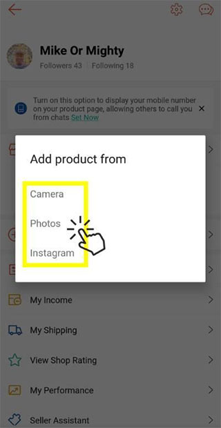 4、选择你要添加的产品,并选择上传产品图片的方式;