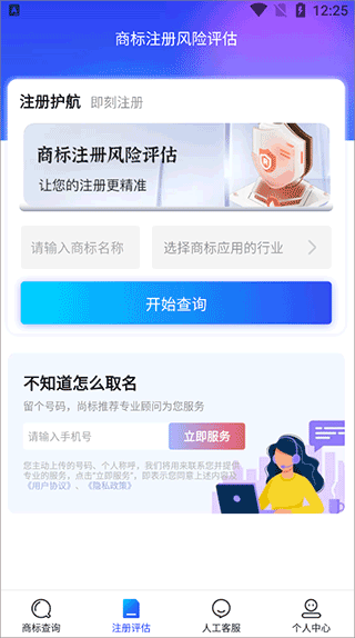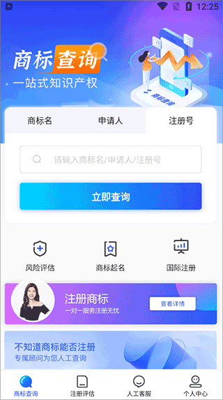 1、打开软件,用户可在“商标查询”中进行多种形式的查询,也可对商标进行一系列评估。