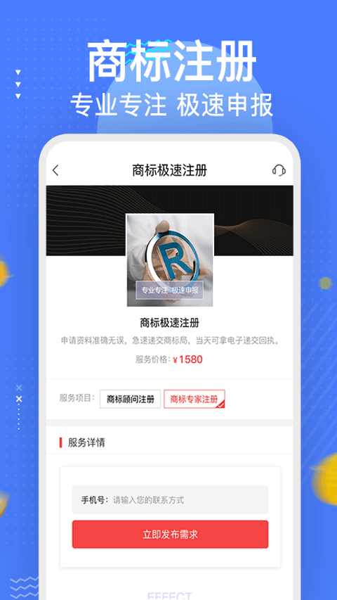3、商标注册:资深商标顾问根据用户需求,提供一对一专业服务。