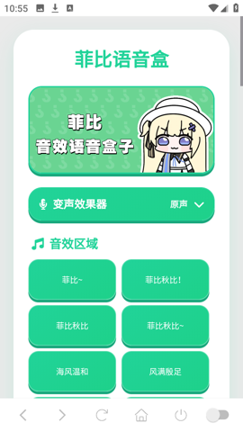 1、软件首页有菲比的各种搞笑语音包,点击即可播放。