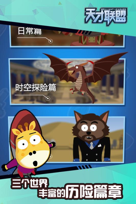 天才联盟手游是由同名动画授权研发的趣味对战游戏,首先剧情上就能让你爱上他,主角一行人意外穿越到这片土地,开始了一段引人入胜的故事情节,你将扮演朱小才来闯关,本游戏为回合制游戏,足够烧脑让你思考如何完美的过关,并且游戏人物全都是原版卡通风格设计,可以多人同时在线游玩。