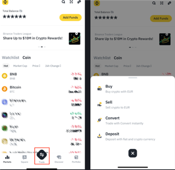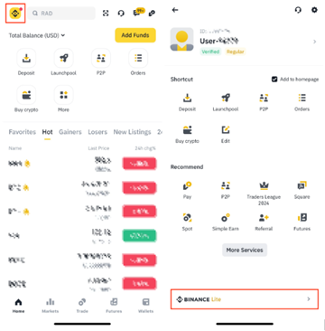 1. 点击首页左上角的币安图标,然后选择底部的【币安简易版】,切换至简易版模式。