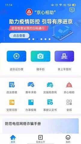 1、为北京市民提供了一站式的交通服务平台,包括自助报案、车管所业务预约、违法等功能。