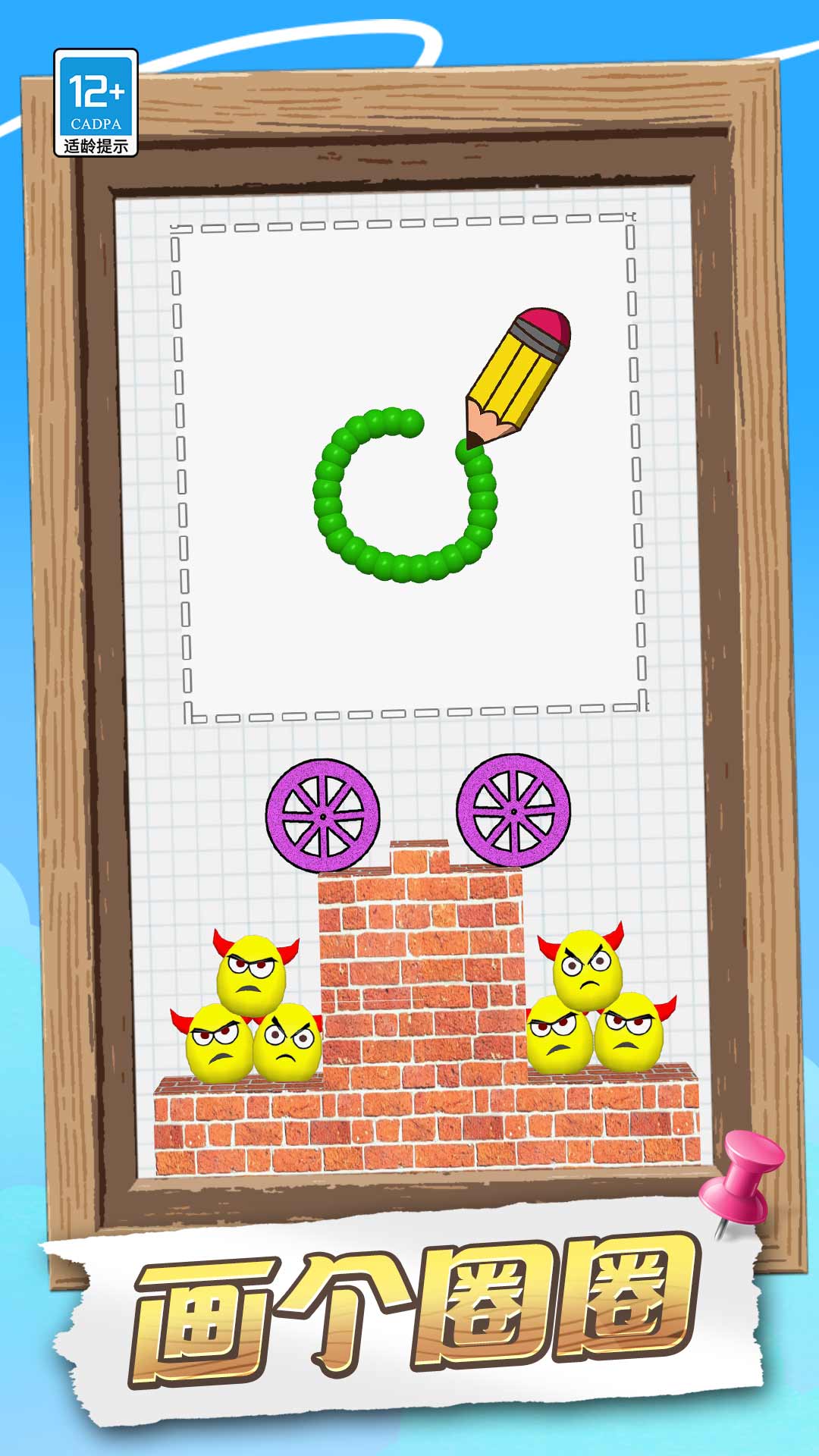脑洞画个圈是一款益智类游戏,挥动笔尖画个神奇的圈圈,击退邪恶的坏蛋,保护好小可爱们。神奇的圈圈可以是带有攻击性的锤子,也可以是带有保护性的盾牌,十分挑战创意性,随你自由发挥。希望你能完成挑战,顺利通关!