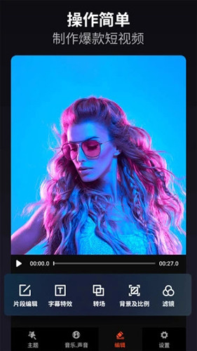 支持对视频进行精准裁剪、分割、合并与顺序调整,用户可自由删减冗余片段或重组内容结构,实现个性化叙事节奏,满足多样化剪辑需求。2、多样化视觉效果