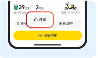 3、在地图上选中车辆,在底部卡片中点击【开锁】按钮即可。