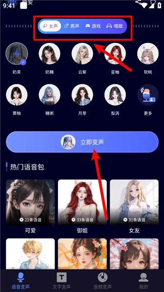 3、同时涵盖多个语音包资源,点击"立即变声"进入。